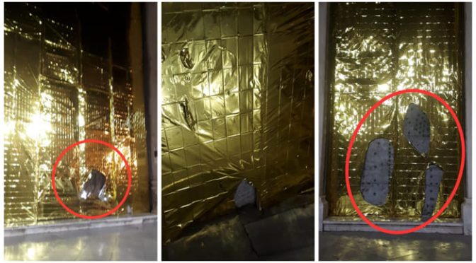 “L’artista aveva inteso – spiegano con linguaggio volutamente impegnato – creare un elemento site-specific attraverso il materiale usato per le coperte isotermiche usate per il soccorso dei migranti in mare. Loro qui cercano l’Eldorado ma l’unico luccichio aureo che trovano è quello delle coperte. Qualcuno, però, ha deciso di dare sfogo alla propria inciviltà, strappando l’installazione. Non sappiamo se si tratti di un gesto dai connotati politici. L’unica cosa certa è che siamo davanti ad una vera e propria vergogna”.