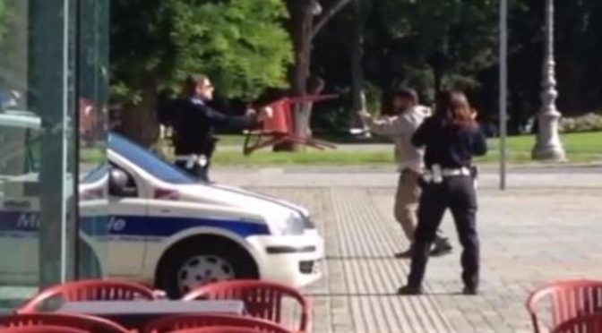 L’immigrato ha staccato i tergicristalli dell’auto di servizio della Municipale, tentando di usarli come frusta contro il vigile. Per difendersi, l’agente ha preso una sedia di un bar con la quale, alla fine, si è difeso ed è riuscito a bloccare lo straniero.